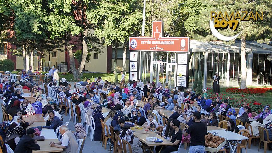 Asırlık çam ağaçları arasında yer alan Seyyid Burhaneddin Türbesi ve Mezarlığı, ramazan ayında vatandaşların iftar sofralarına ev sahipliği yapıyor. Her gün Büyükşehir Belediyesi tarafından yaklaşık 2 bin 500 kişiye burada iftar veriliyor.