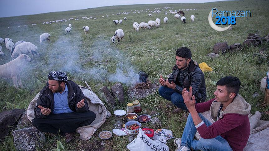 Yemeklerini genelde yüksek noktalarda yiyen çobanlar, açık ve temiz havada keyifli vakit geçiriyor. İftarın ardından çay içip bir süre dinlenen çobanlar, sonrasında ise hayvanlarıyla ilgilenip sahura kadar uyumaya çalışıyor.