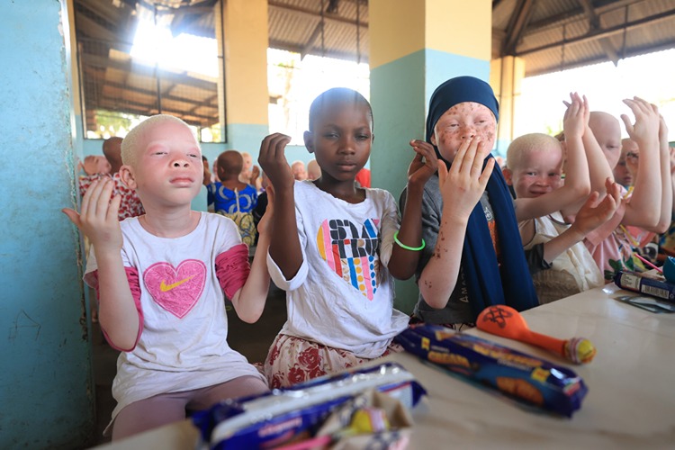 Türk Diyanet Vakfı (TDV), Tanzanya'da vücutlarındaki bir pigmentin eksikliği nedeniyle "beyaz" olarak dünyaya gelen albino yetimleri hediyeleriyle sevindirdi.