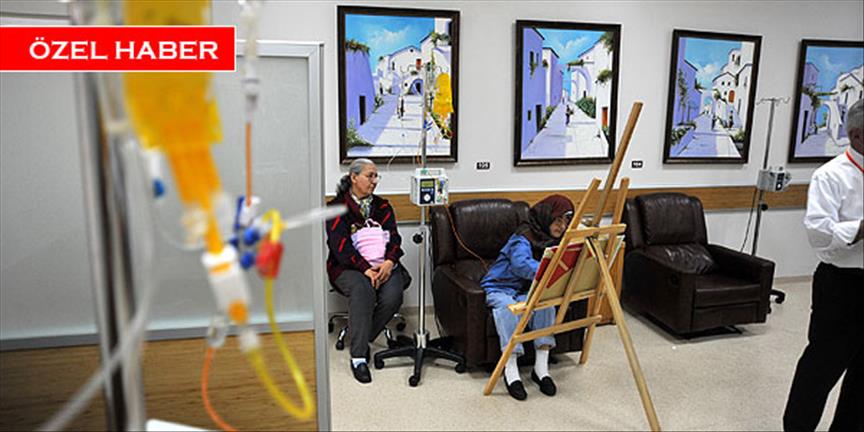 Merkezde bir tür sosyal program uyguladıklarını ifade eden Bozcuk, ''Ressamımız hastalarımıza kemoterapi alırken resim yaptırıyor, cam ustamız cam ürünlerini yaparken hastalarımız seyredebiliyor ya da bu deneyimin bir parçası olabiliyor. Müzisyen arkadaşımız hem canlı hem görsel hem elektronik müzikle sunum yapıyor'' diye konuştu.