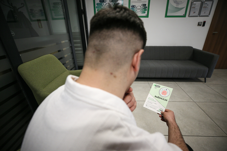 "AMATEM'e başvurdum. O zaman biraz tedavi oldum ama başarılı sonuçlanmadı çünkü bilinçli değildim. Sonra orada Yeşilay'ın broşürünü görüp başvurmak istedim. 'Buraya da bir gideyim, ne kaybedebilirim?' dedim. Buraya yattığımda birçok şeyi öğrendim. Yeniden doğmuş gibi oldum. Üstümdeki yeleği çıkarttım, yeni yelek giydim sanki."