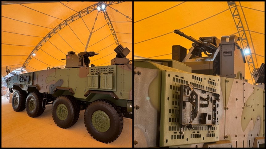 Bu kulenin sergilendiği bir diğer araç STREIT Grup standındaki ANACONDA 8x8 zırhlı muharebe aracı oldu.