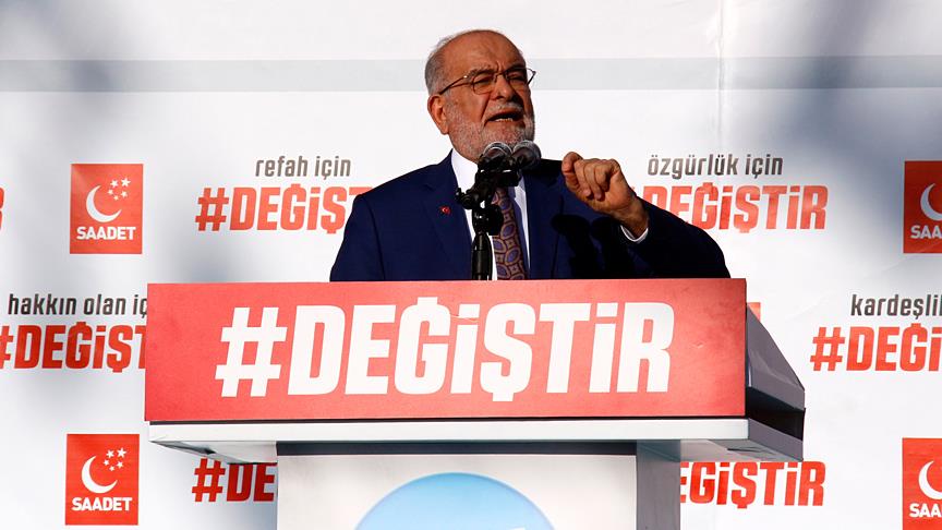 Saadet Partisi Genel Başkanı ve cumhurbaşkanı adayı Temel Karamollaoğlu, partisince İzmit'teki 15 Temmuz Milli İrade Meydanı'nda düzenlenen mitingde yaptığı konuşmada, 24 Haziran'daki seçimlerin barış ve huzur içerisinde yapılmasını arzu ettiklerini söyledi.