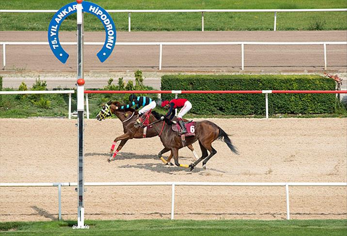 Ankara 75. Yıl Hipodromu'nda 2 bin 100 metrelik kum pistte yapılan koşuya, 3 yaşındaki 7 İngiliz atı katıldı.