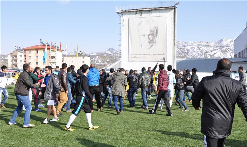 Dersimspor ile Genç Muratspor arasında oynanan Bölgesel Amatör Lig (BAL) 2. Grup karşılaşması sırasında, taraftarlar arasında çıkan taşlı sopalı kavgada, 22 kişi yaralandı.