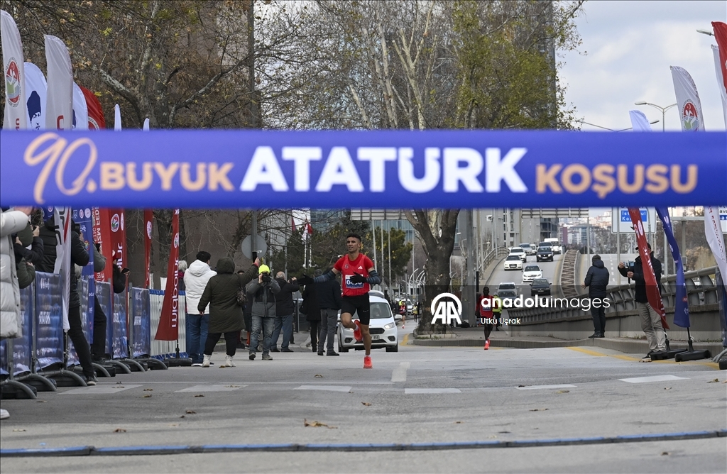 Mustafa Kemal Atatürk'ün Ankara'ya gelişinin 106. yıl dönümü dolayısıyla düzenlenen 90. Büyük Atatürk Koşusu'nu kadınlarda Dilek Öztürk, erkeklerde Diyar Ergüven kazandı.