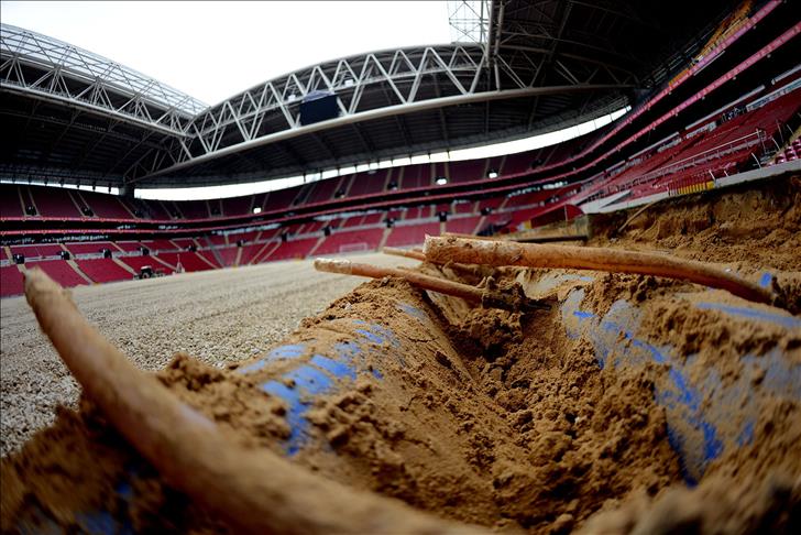 Ali Sami Yen Spor Kompleksi Türk Telekom Arena'da drenaj sisteminin yenilenmesi için yapılan çalışmalar sürüyor.