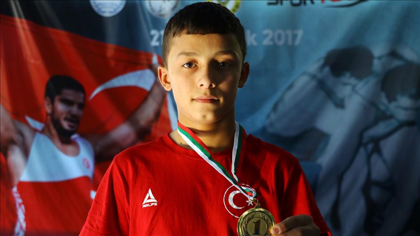 Ekrem Aslan, AA muhabirine yaptığı açıklamada, güreşe babasının teşvikiyle başladığını söyledi.