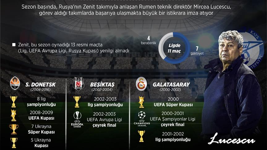 Bu sezon Rusya'nın Zenit takımıyla anlaşan Rumen teknik direktör Mircea Lucescu, gittiği takımlarda başarılarıyla dikkati çekiyor.
