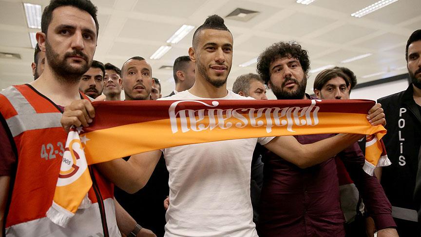 Galatasaraylı çok sayıda taraftarın meşale yakarak sevgi gösterisinde bulunduğu Faslı futbolcu, kendisini bekleyen araçla havalimanından konaklayacağı otele hareket etti.