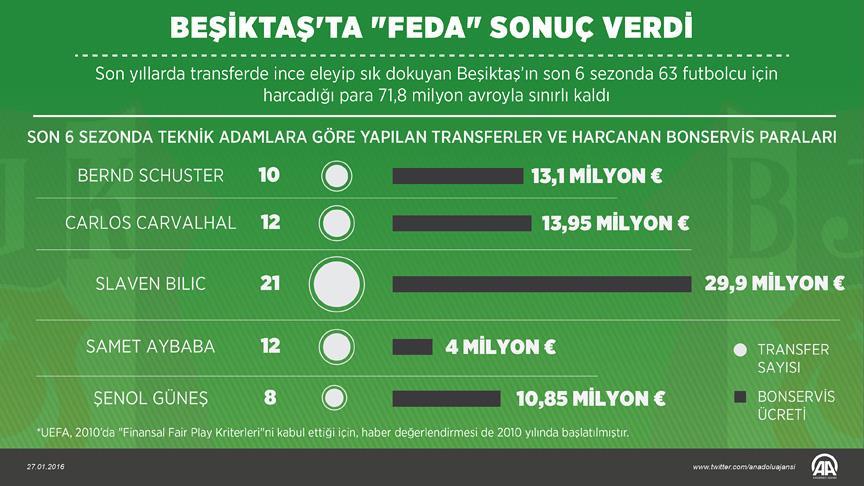 Beşiktaş, son yıllarda transferde ince eleyip sık dokurken, son 6 sezonda 63 futbolcu için harcadığı para 71,8 milyon avroyla sınırlı kaldı.