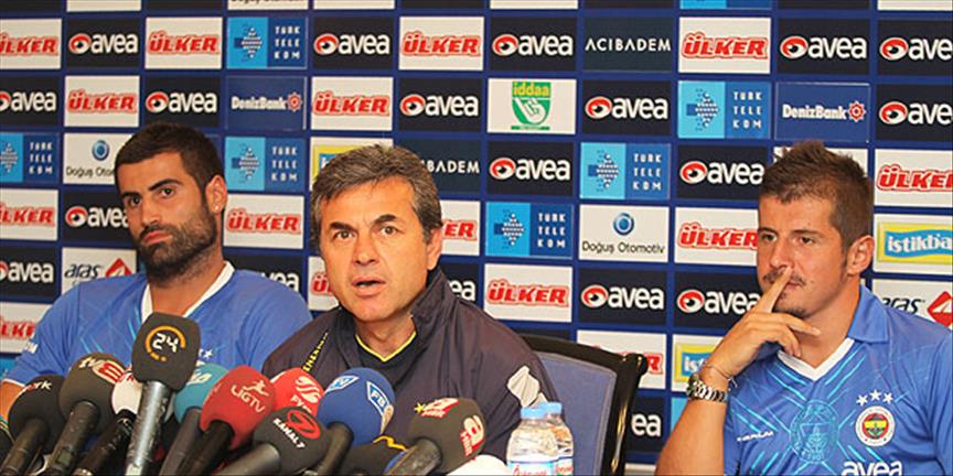 Aykut Kocaman, Fenerbahçe Can Bartu Tesisleri'nde, Alex'ten sonra gelen takım kaptanları Emre Belözoğlu ve Volkan Demirel ile birlikte gelişmeleri değerlendirmek üzere basın toplantısı düzenledi.