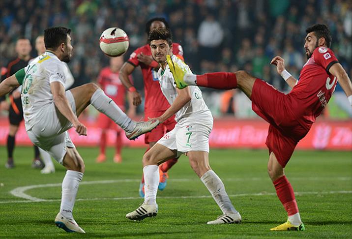 37. dakikada gelişen Bursaspor atağında, Serdar Aziz'in sağ taraftan ceza sahasına pasında Volkan Şen topla buluştu. Bu oyuncunun vuruşunda kaleci Ferhat Kaplan, meşin yuvarlağı tokatlayarak uzaklaştırdı.