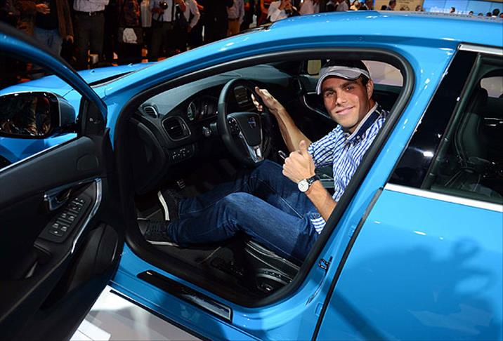 Bir İsveç firması olan Volvo'nun fuardaki standına ziyarette bulunan Elmander, yeni model araçların tanıtımına katıldı.