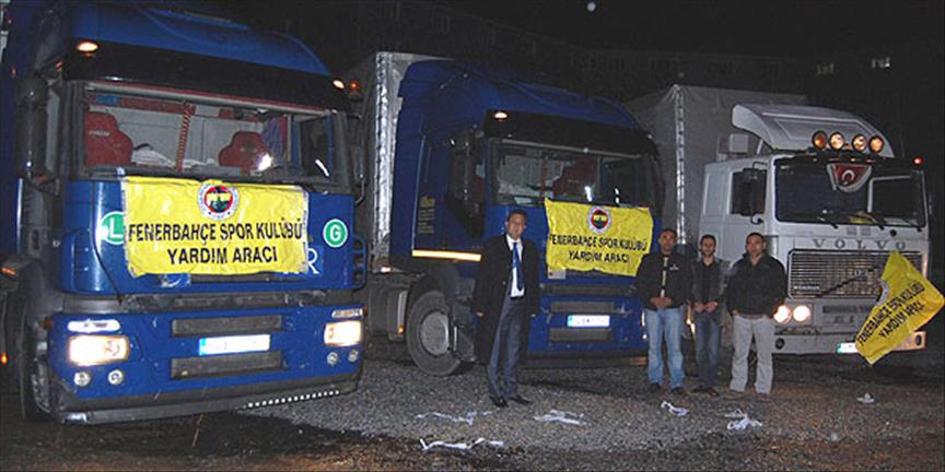 Tatvan'a giriş yapan 3 yardım tırı, Bitlis Fenerbahçeliler Derneği Başkanı Haluk Altun ile derneğin yönetim kurulu üyeleri ve taraftarlar tarafından karşılandı.