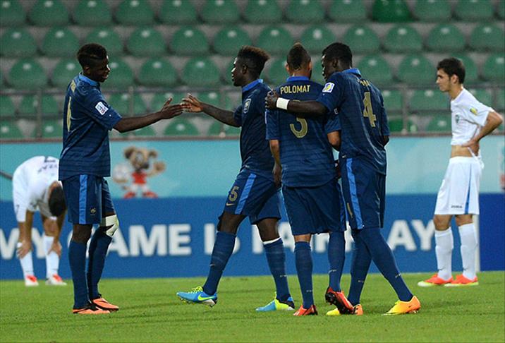 Karşılaşmaya hızlı başlayan Fransa, oyunu kendi yarı alanında kabul eden Özbekistan karşısında maç boyunca etkili bir futbol ortaya koyarak tehlikeli ataklar geliştirdi. 2. dakikada Sanogo, 17. dakikada Thauvin'in direkten dönen şutlarıyla gole çok yaklaşan Fransa, 31. dakikada Sanago'nun ayağından golü bularak öne geçti ve ardından 2 penaltı golüyle de ilk yarıyı 3-0 önde kapamayı başardı.