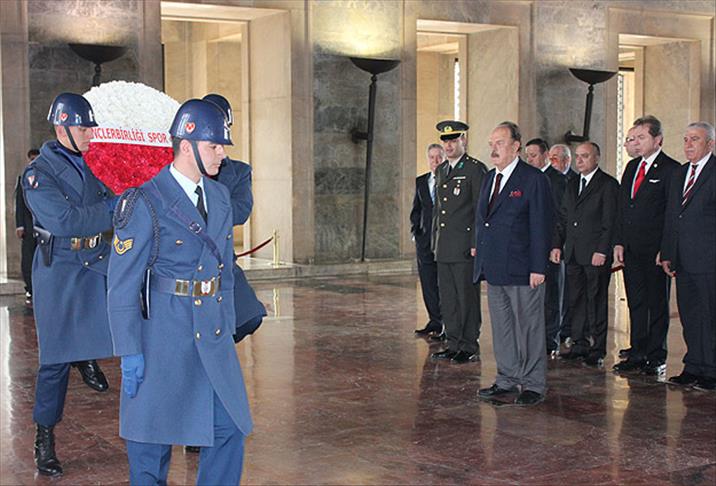 Kırmızı-siyahlı heyetin Anıtkabir ziyareti, İlhan Cavcav'ın Atatürk'ün mozolesine çelenk bırakmasıyla başladı. Saygı duruşunda bulunun heyet, ardından Anıtkabir merdivenlerinde hatıra fotoğrafı çektirdi.