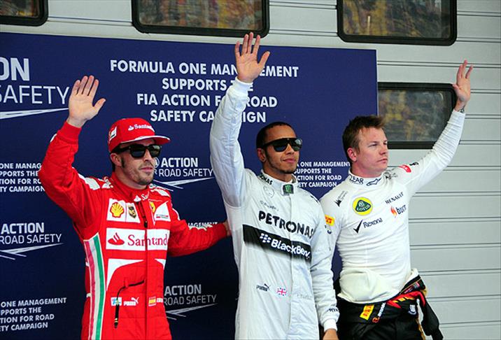 Lotus'un Fin pilotu Kimi Raikkönen ve Ferrari'nin İspanyol pilotu Fernando Alonso ise ikinci ve üçüncü sıralarda yarışacak.
