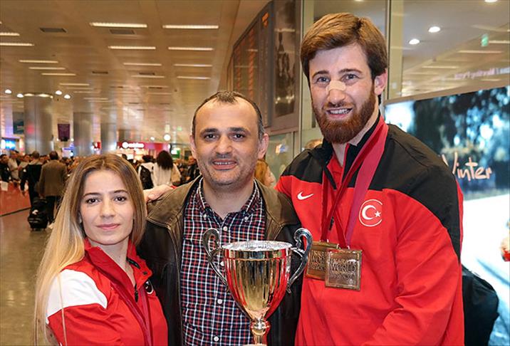 Havalimanında tezahüratlar, alkışlar ve çiçeklerle karşılanan millilere, yolcularını bekleyen vatandaşlar da sevgi gösterisinde bulundu. Türkiye'ye 2 altın, 3 bronz madalyayla dönen ay-yıldızlı sporcular, mutluluklarını yakınlarıyla paylaştı.