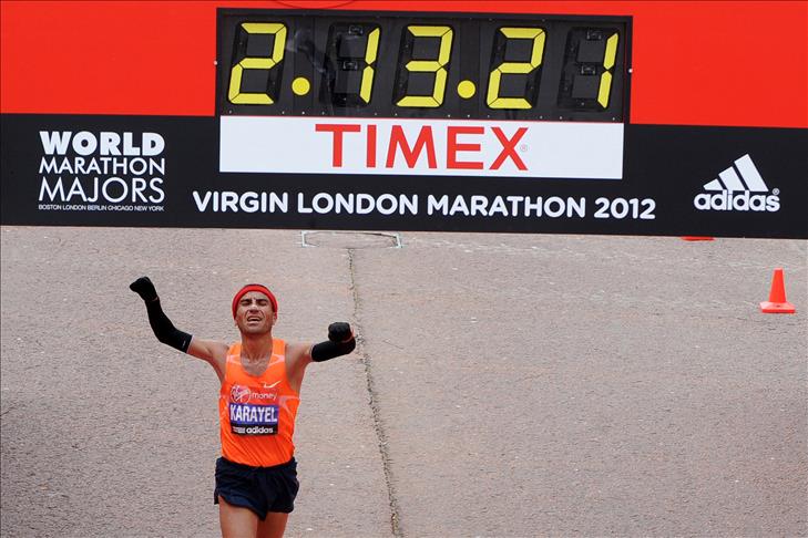İngiltere'nin başkenti Londra'da bu yıl 32'ncisi düzenlenen maratonda yarışan Türk sporcu Karayel, 2.13.21'lik derecesiyle 16'ncı oldu.