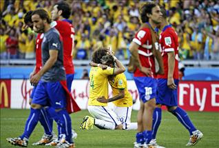 2014 FIFA Dünya Kupası'nda çeyrek finalde karşılaşacak ilk takımlar, evsahibi Brezilya ile Kolombiya oldu.