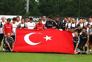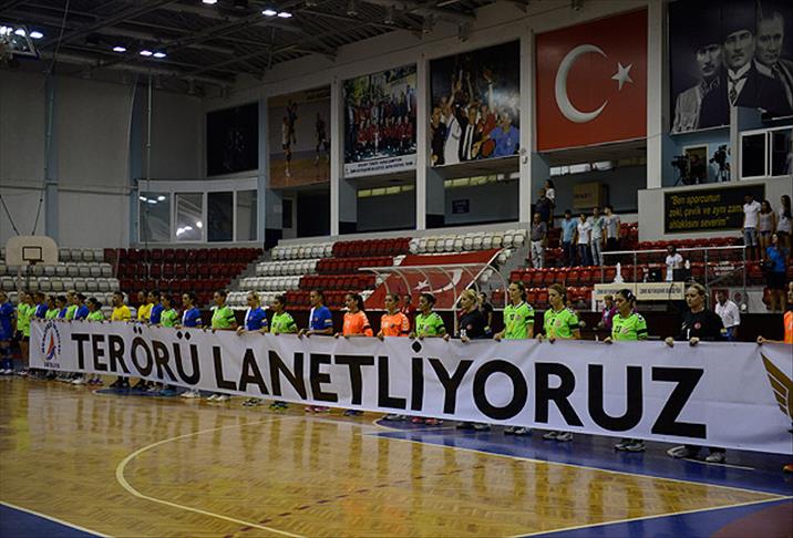 Müsabakaya iki takım oyuncuları "Terörü lanetliyoruz" yazılı ortak pankartla çıktı.