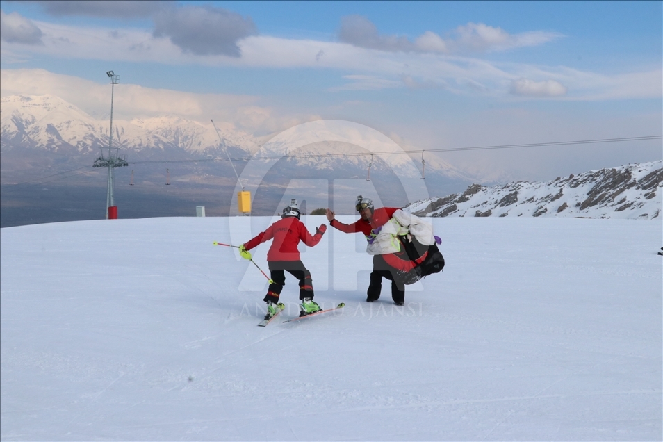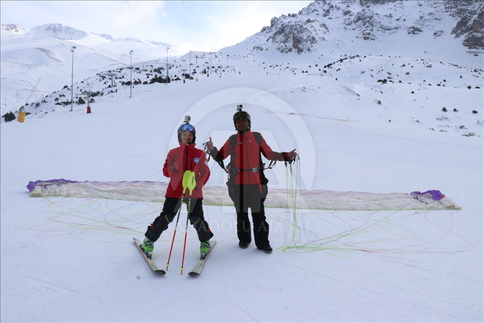 Özel Sporcular Dünya Kayak Şampiyonasında geçen yıl slalomda elde ettiği ikincilik sonrası Cumhurbaşkanı Recep Tayyip Erdoğan'a verdiği birinci olma sözünü tutmak isteyen milli kayakçı Ayşe Kader Yavuz, kamp çalışmalarını babasının yamaç paraşütü ile gökyüzünden antrenörün de yerden takibi ile sürdürüyor. Baba Osman Yavuz, milli sporcunun çalışmalarını yamaç paraşütü ile takip ediyor.