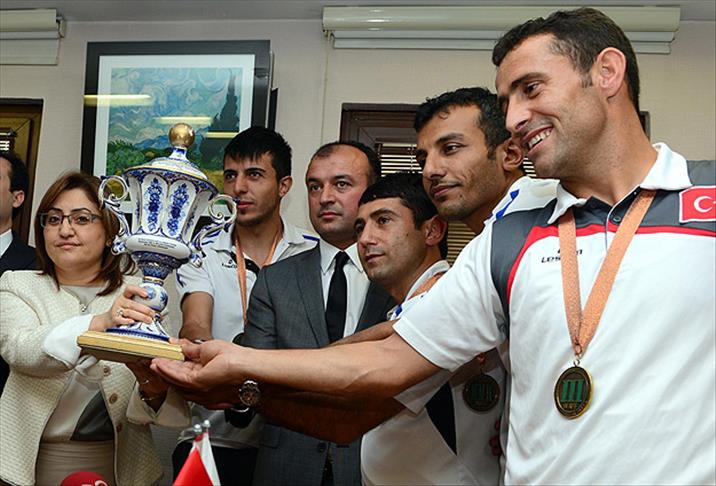 Takım oyuncularını tek tek kutlayan Bakan Şahin, ''Ülkemizin sevinç kaynağı, onur kaynağı oldunuz. Ülkemizi yurt dışında temsilde çok büyük başarı sağladınız'' dedi.
