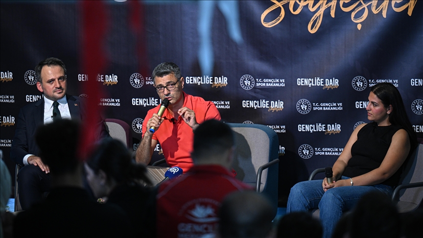 Gölbaşı Gençlik ve Spor Bakanlığı Gençlik Merkezi'ndeki programda Şevval İlayda Tarhan ve Yusuf Dikeç ile Gençlik ve Spor Bakan Yardımcısı Enes Eminoğlu ve Gençlik Hizmetleri Genel Müdürü Enes Efendioğlu, gençlerle bir araya geldi.