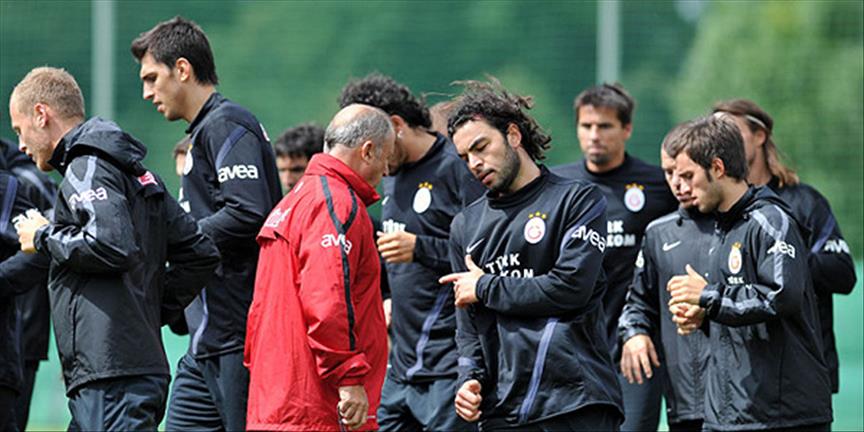 Galatasaraylı futbolcular günün ilk anrenmanında, teknik direktör Fatih Terim ve teknik heyet gözetiminde, istasyon çalışması yaptı.