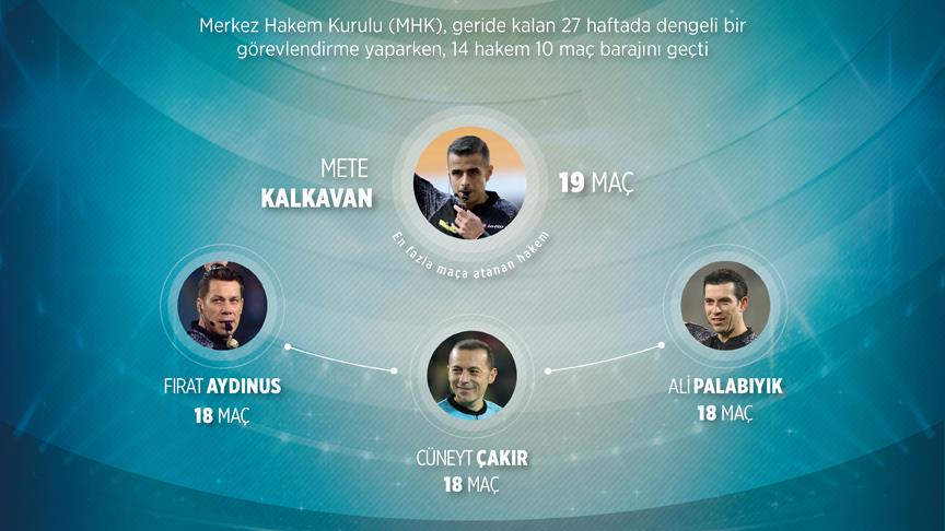 MHK tarafından en fazla maça atanan hakem Mete Kalkavan oldu. Kalkavan, en çok görevlendirilen hakemler arasında 19 maçla zirvede yer aldı.