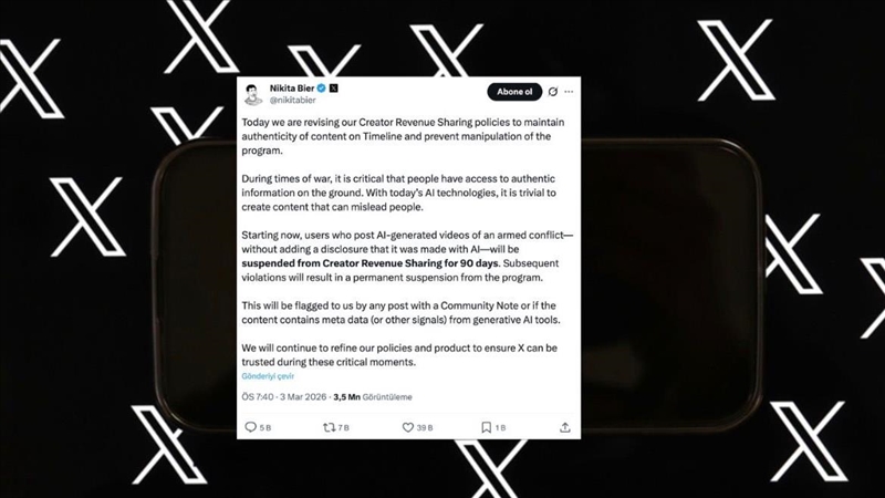 X'ten yeni düzenleme: Yapay zeka savaş görüntüsü paylaşan hesaplar para kazanamayacak