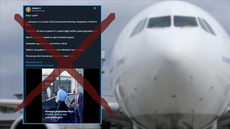 İddianın dile getirildiği paylaşıma eklenen videonun, Şansölye Merz'in Almanya'dan Türkiye'ye doğru yola çıktığı esnada kaydedildiği belirlendi.