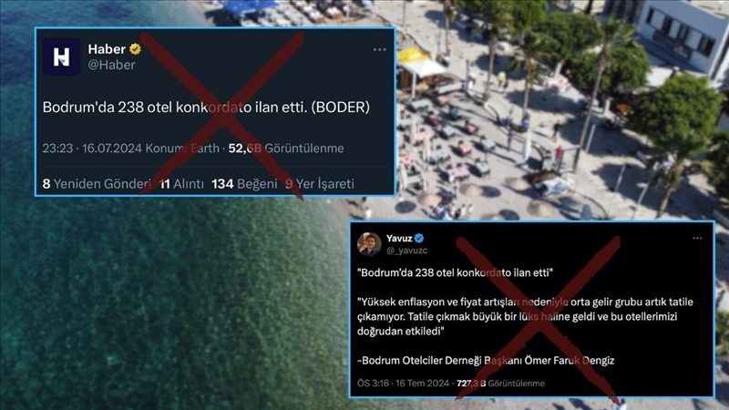 X'te (eski adıyla Twitter) Bodrum Otelciler Derneği (BODER) Başkanı Ömer Faruk Dengiz'in 'Bodrum'da 328 otel konkordato ilan etti' açıklamasında bulunduğu iddia edildi.