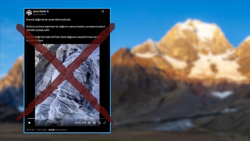 Karla kaplı bir bölgede donmuş halde görülen bir kişiye ait görüntüler, “Everest Dağı’nda bir ceset daha bulundu. Onlarca yıl önce kaybolan bir dağcının cansız bedeni buzların altından ortaya çıktı.” notuyla paylaşıldı.