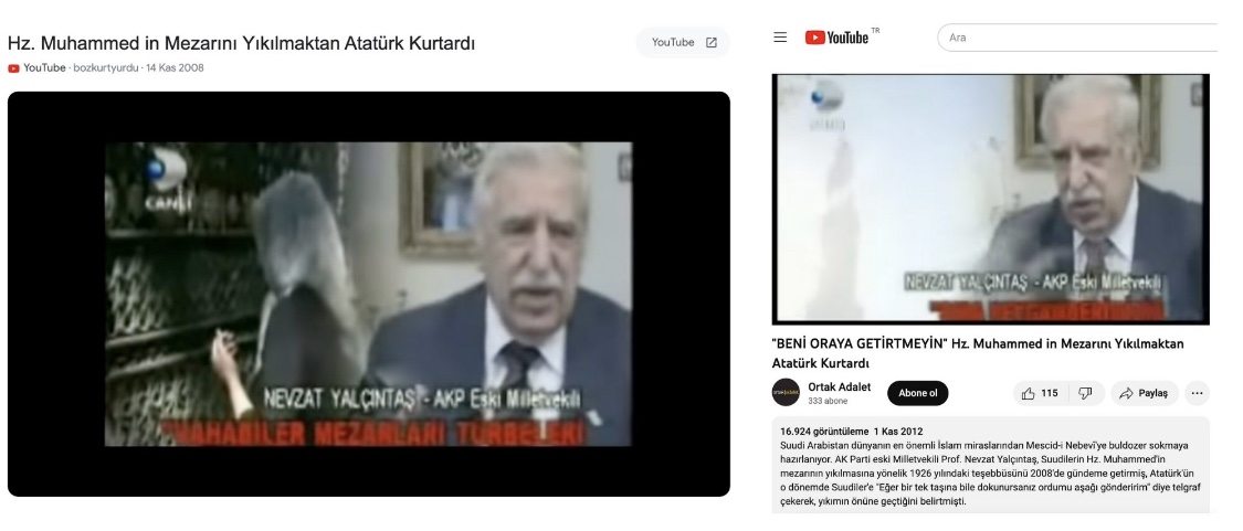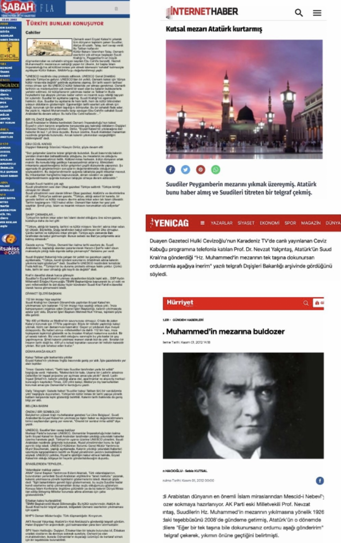 Atatürk'ün Hz. Muhammed'in mezarını yıkarak yerini değiştirmeyi planlayan Suudi Arabistan Kralı'na bir uyarı mektubu yazdığı veya telgrafı çektiği öne sürüldü.