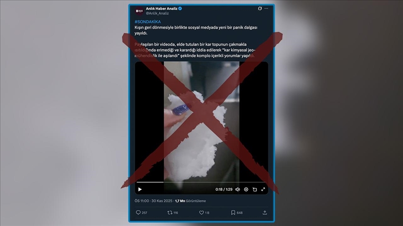 Komplo teorileriyle ilişkilendirilerek dolaşıma sokulan paylaşımlar sosyal medya kullanıcılarının dikkatini çekiyor ve hızla yayılıyor. ABD'de kayda geçen ve gökyüzünden yapay kar yağdırıldığını iddia eden bir görüntü birçok dile çevirilerek servis edildi. ABD merkezli X platformunda, bu konuya dair yapılan Türkçe paylaşım da 1,7 milyonun üzerinde görüntülenme sayısına ulaştı.