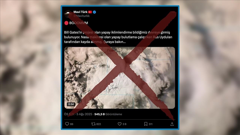 X'te meteorolojik bir uydu görüntüsü paylaşılarak, videonun Rus uydularına yakalanan yapay bulutlama çalışmasını gösterdiği iddia edildi.