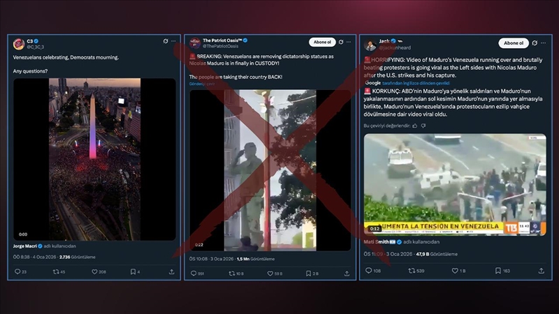 Maduro'nun ABD güçleri tarafından ülkeden çıkarılmasının ardından, başta ABD merkezli X uygulaması olmak üzere sosyal medya platformlarında gerçeği yansıtmayan çok sayıda video dolaşıma girdi. Yaşananlar sonrası güvenlik güçlerinin zırhlı araçlarla sokağa çıkan protestocuları ezdiği iddiasıyla bir görüntü paylaşıldı.