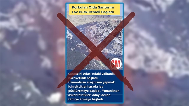Sosyal medyada, volkanik bir dağdan lav püskürme anını gösteren bir video dolaşıma sokuldu. Videonun üzerinde, "Santorini Adası'ndaki volkanik hareketlilik başladı. Uzmanların araştırma yapmak için adaya gittikleri sırada lav püskürtmeye başladı. Yunanistan askeri birlikleri adayı acilen tahliye etmeye başladı." ifadeleri yer aldı. Yaklaşık 16 bin beğeni alan görüntü, sosyal medya kullanıcılarının ilgisini çekti.