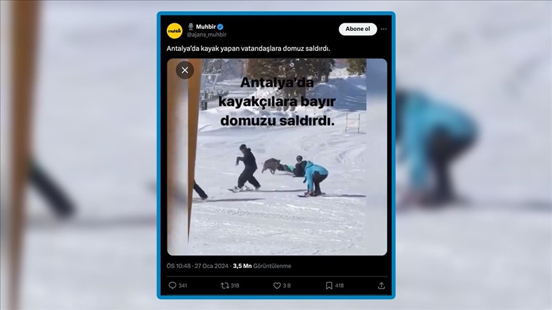 Sosyal medyada kayak yapan bir grup kişiye yaban domuzunun saldırdığı anın görüntüsü paylaşılarak, videonun Antalya'da kayda geçtiği iddiası ortaya atıldı. Görüntünün sosyal medya kullanıcılarının dikkatini çekerek, gündem olduğu görüldü.