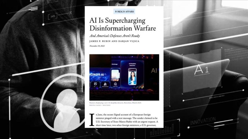 "Yapay zekanın kötü niyetle kullanılması ve enformasyon savaşının bir aracına dönüşmesi ne gibi etkiler doğuru?" ABD'li politika, uluslararası ilişkiler ve ekonomi dergisi Foreign Affairs yapay zekanın bu bağlamda oynadığı rolü değerlendiren bir makale yayımladı. Makalede; istihbarat toplama, dezenformasyon kampanyaları ve kötü niyetli etki operasyonları yürütmek isteyen aktörlerin yapay zekayı nasıl kullandığı ele alındı.