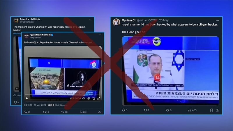 Bu video kısa süre içinde onlarca X (eski adıyla Twitter) kullanıcısı tarafından, "İsrail'in Kanal 14 kanalının Libyalı bir hacker tarafından hacklendiği an." ifadeleriyle kullanıcılara servis edildi.