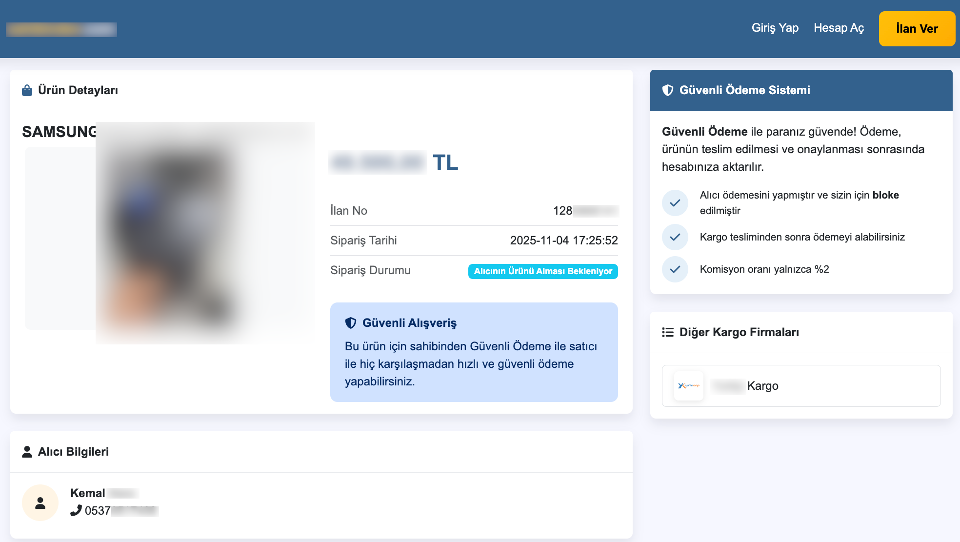 Sahte site, satıcıyı gerçek bir satış olduğuna tamamen inandırıyor ve bir kargo kodu üretiyor. Satıcı, bu kodun güvenli satış sistemine ait olduğunu düşünerek ürünü paketliyor ve en yakın kargo şubesine gidiyor.