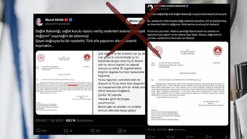 ABD merkezli sosyal medya platformu X'te yer alan paylaşımlarda; sağlık kurulu raporu veriliş nedenleri arasına 'cinsiyet değişimi' seçeneği eklendiği belirtilerek, cinsiyet değişikliğine ilişkin yeni bir hak tanındığı iddiası yayıldı. Sosyal medya kullanıcıları arasında etkileşime neden olan içeriklerde, Türk aile yapısına zarar vereceği yorumlarıyla yer aldı.