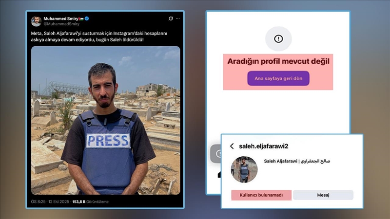İsrail'in Gazze'de işlediği soykırım sırasında Filistinlilerin yaşadığı sıkıntıları aktaran Filistinli gazeteci Salih el-Caferavi, dün akşam uğradığı silahlı saldırıda hayatını kaybetti. ABD merkezli sosyal medya platformu Instagram ise Filistinli gazetecinin hesabını öldürülmesinden birkaç saat sonra kapattı.