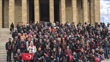 Vali Yüksel, Garnizon Komutanı Korgeneral İlhan Talu ve Emniyet Müdürü Kadir Ay ile gaziler, Aslanlı Yol'dan yürüyerek Atatürk'ün mozolesine çelenk bıraktı.