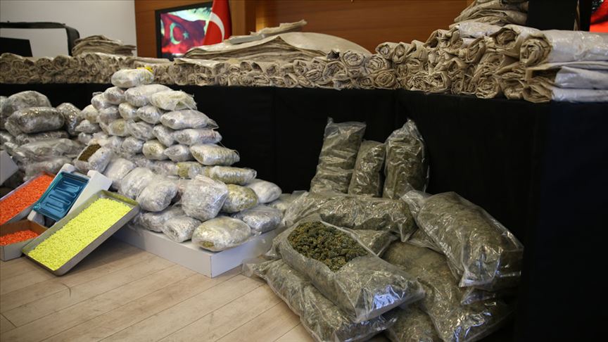 Ülke genelinde 2019'da gerçekleştirilen operasyonlarda 64 ton 337 kilo esrar, 26 ton 237 kilo skunk, 20 ton 166 kilo eroin, 1 ton 638 kilo kokain, 710 kilo bonzai, 1 ton 42 kilo metamfetamin, 1 ton 281 kilo afyon sakızı, 11 milyon 81 bin 667 captagon, 8 milyon 694 bin 405 ecstasy, 2 milyon 67 bin 259 sentetik ecza ve 42 milyon 276 bin 694 kök kenevir ele geçirildi.