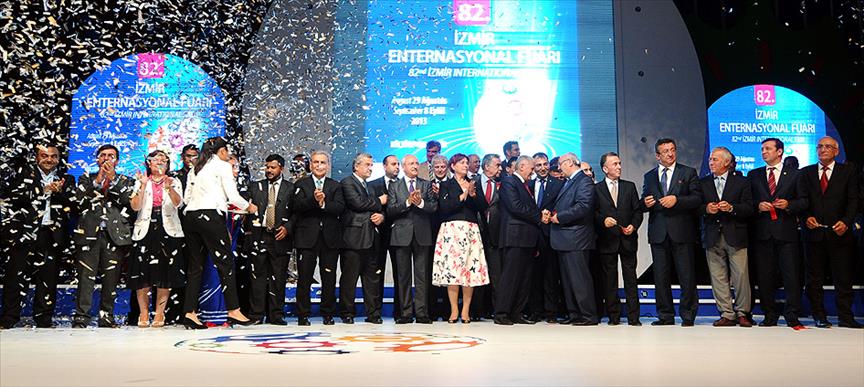 İzmir Enternasyonal Fuarı (İEF), TBMM Başkan Vekili Güldal Mumcu, CHP Genel Başkanı Kemal Kılıçdaroğlu, Ulaştırma, Denizcilik ve Haberleşme Bakanı Binali Yıldırım, CHP Genel Başkan Yardımcısı Umut Oran, İzmir milletvekilleri, İzmir Valisi Mustafa Toprak, Sinop Valisi Yavuz Selim Köşger, Bilim, Sanayi ve Teknoloji Bakan Yardımcısı Davut Kavranoğlu, Sri Lanka Sanayi ve Ticaret Bakanı Rishad Bathiudeen ile 20'si bakan düzeyinde 40 ülkenin temsilcileri, İzmir Büyükşehir Belediye Başkanı Aziz Kocaoğlu, konuk devlet temsilcileri, üst düzey bürokratlar ve iş dünyasının temsilcilerinin katılımıyla açıldı.