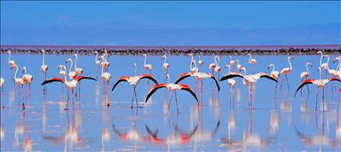 Bölgede allı turna olarak da bilinen flamingoların en önemli üreme alanlarından olan Acıgöl'deki besin kaynakları, hayvanların tüylerinin renklerini de etkiliyor.